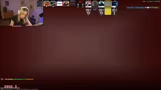 00:11:01Nach kurzen Vorbereitungen startet der Stream in ein Faceit-Spiel von Counter-Strike. Kurz darauf kommt es zu erheblichen technischen Problemen: Der Streamer mutmaßt, ihr PC sei 'gekapert', Spotify funktioniert nicht mehr und das Spiel selbst läuft nicht wie gewünscht. Trotz anfänglicher Verärgerung ist die Stimmung überwiegend positiv und sie freut sich, wieder im Spiel zu sein.