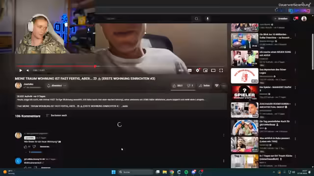00:27:13Es wird der neue Wohnungsvlog von Yoshi erwähnt und beschlossen, diesen anzusehen. Der Streamer hat einen Blumenstrauß und einen Nachttisch für die zukünftige Wohnung gekauft. Es werden elektrische Salz- und Pfefferstreuer sowie Gläser gezeigt, die bereits für die neue Wohnung bereitstehen. Es wird ein Reel zu einem Zwei-Etagen-Grill gezeigt, der als Hocker und Tisch genutzt wird. Der Streamer findet den Stil sehr schön. Es wird überlegt, ob Interior-Videos eher für TikTok oder YouTube geeignet wären. Der Streamer möchte Vlogs zum Einrichten der eigenen Wohnung machen. Die Mutter des Streamers hat einen Tisch mit 15 Prozent Rabatt gefunden. Der Streamer möchte das Video von Yoshi ansehen, um sich Inspiration für die eigene Wohnung zu holen. Yoshi hat sich ein Traumsofa für seine erste eigene Wohnung gekauft. Das Sofa hat 2500 Euro gekostet. Der Streamer findet die Farbe des Sofas empfindlich. Yoshi hat einen Schreibtisch von FlexiSpot bekommen. Der Streamer findet den Stuhl sehr gemütlich.