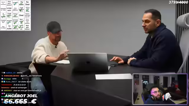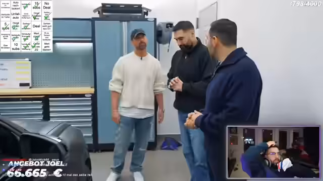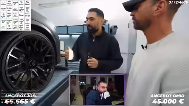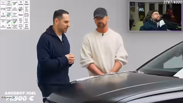 01:50:48Streamern steuert den Höhepunkt des Streams zu, indem er das finale Joel macht, um sich mit ihm an den Schreibtisch zu begeben. Dies ist ein Zeichen, dass die Verhandlung ernst wird. Er bekräftigt sein Angebot von 50.000 Euro als maximal möglichen Preis und verdeutlicht, dass dies aus Kostengründen die absolute Grenze ist. Er weist auf den ungepflegten Zustand des Innenraums und die Macken an einer Felge hin, fügt aber hinzu, dass das Fahrzeug mechanisch gesund sei. Joel wird gebeten, die finale Entscheidung zu treffen.