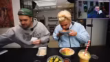 02:33:07Beide Bestellungen werden verkostet. Die Bestellung des Streamers mit den Nudeln enttäuscht leicht, da der Geschmack als zurückhaltend empfunden wird. Die Beef Momo und der Gurkensalat hingegen schmecken hervorragend. Sein Dessert Zampa ist ein voller Erfolg. Max' griechische Bestellung mit dem butterzarten Schaschlik und dem fettigen Gyros schmeckt dem Streamer so gut, dass er als klare Siegerin der Challenge hervorgeht.