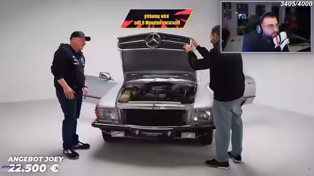 Der Verkauf des Mercedes 280 SLC des Sängers Joey Kelly führte zunächst zu einem beachtlichen Preisgefälle. Während der geforderte Wert bei 22.500 Euro lag, wurden durch einen kritischen Zustandscheck erhebliche Mängel festgestellt. Eine Einigung erfolgte nicht durch einen reinen Kauf, sondern durch ein gemeinsames Projekt. Der Wagen wird im Studio aufbereitet, um seinen Wert zu steigern und dabei hochwertigen Content zu schaffen.