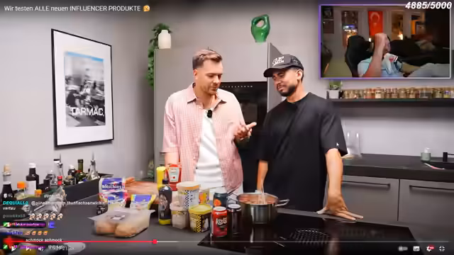 01:48:21Der Streamer startet einen Segment, in dem er aktuelle Influencer-Produkte testet und bewertet. Zuerst werden "Hot Honey Chips" von Rob Rob vorgestellt, deren Geschmack nach Dill und sauren Gurken beschrieben wird. Anschließend wird die Partnerschaft mit "Grab my meal" beworben, einem Meal-Service, der mit dem Code MERTABIMULA 5% Rabatt bietet und Gerichte in nur 7-8 Minuten in der Mikrowelle zubereitet. Der Hauptfokus liegt dabei auf Geschmacksrichtungen wie XL-Gerichte und Low-Carb.