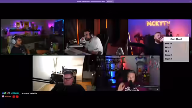 06:25:18Der Stream beginnt mit einer Runde Geografie- und Allgemeinwissen. Teilnehmer versuchen, Fragen zum Thema Essen, Mathematik, Internet und Geschichte zu beantworten. Es geht um die Farbe unreifer Bananen, die Ecken und Kanten eines Quaders, den Erfinder des Internets und den Fluss, der durch Dresden fließt. Die Stimmung ist enthusiastisch und von竞赛geprägt, wobei die Teilnehmer Punkte für richtige Antworten sammeln und für falsche Antworten Punkte abgezogen werden.