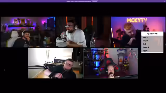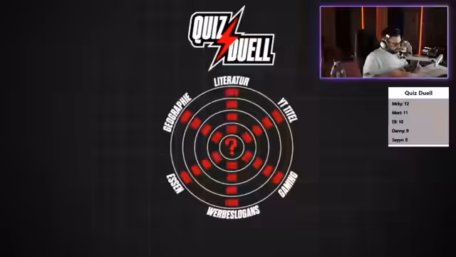 05:40:31Nach einer Pause führt der Streamer ein neues Spiel mit einem modifizierten Regelwerk ein. Ein Teilnehmer wählt eine Kategorie, muss die Frage beantworten, und verliert halbe Punkte bei einer falschen Antwort. Die anderen Teilnehmer können mit dem Buzzer eingreifen, um die Frage zu übernehmen und ebenfalls halbe Punkte zu erhalten. Die Kategorien variieren von Personenraten über Logo-Verfälschungen bis hin zu mathematischen und sprachlichen Fragen, was ein dynamisches und unvorhersehbares Spielerlebnis schafft.