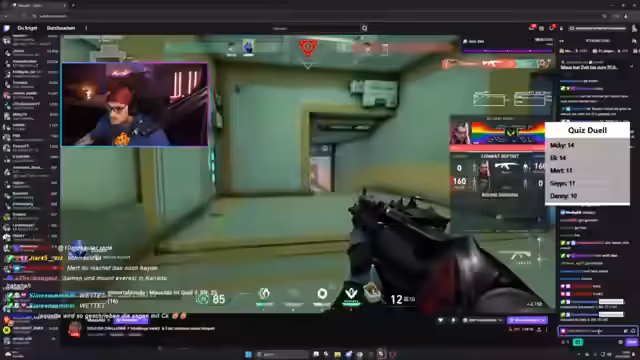 11:15:18Obwohl 18 Kills erzielt wurden, verliert der Streamer am Ende Rangpunkte. Er ist verwirrt über das Punktesystem, da er Team-MVP war und dennoch Punkte verloren hat. Er gibt zu, dass der Verlust an mehreren Tagen nicht rückgängig gemacht werden konnte. In einem Duell wird ein Mitspieler als 'kleine Fotze' beschimpft, der angeblich ein No Scope geschossen hat, was den Sieg sicherte.