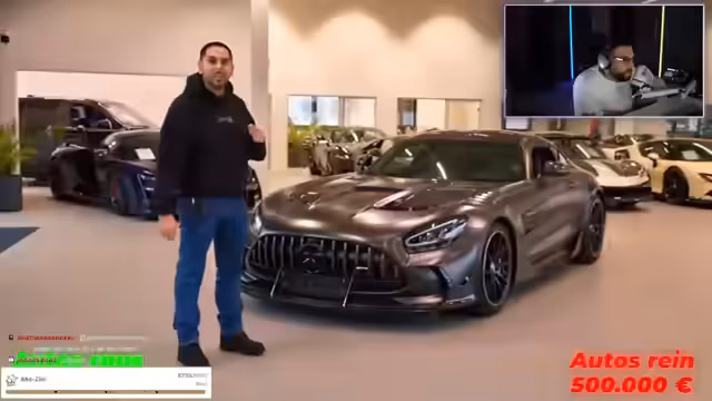 01:03:49Zu Beginn präsentiert der Streamer einen AMG GT Black Series, dessen Preis sich zwischen 350.000 und 400.000 Euro bewegt und der von einem Kunden als sehr gutes Investment angesehen wird. Es folgt ein BMW M3 mit 510 PS und ein Lamborghini Urus Performante für 130.000 Euro, welcher einen kompletten Brabus-Umbau aufweist, was als unpassend für einen Diesel beschrieben wird. Zuletzt werden ein Nissan GT-R und ein Mercedes-Benz SL 65 Black Series erwähnt, wobei der SL an einen Kunden in Frankreich für 420.000 Euro verkauft wurde.