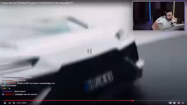 00:59:25Der Streamer präsentiert einen Mercedes-AMG GT Black Series, der für 350.000 Euro verkauft wurde. Das Fahrzeug wird für seinen V8-Biturbo-Motor und das matte Magno-Lackiertes Gelobt. Es wird eine Diskussion über den Preis des Wagens im Vergleich zu anderen Modellen und die Frage, ob er neu oder gebraucht sei, gestartet. Der Streamer bittet die Zuschauer um Hilfe, den genauen Verkaufspreis und das Baujahr des Fahrzeugs herauszufinden, da er sich nicht mehr sicher ist.