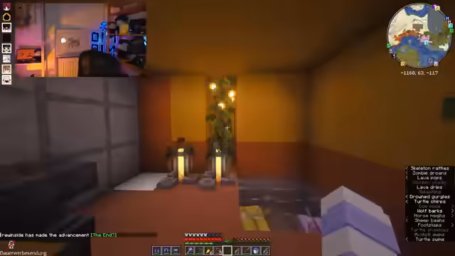 03:54:51Es wird über die Navigation in Minecraft und die Fähigkeit, Himmelsrichtungen zu bestimmen, diskutiert, wobei eine Anekdote über die Verwendung eines Atlas in der Kindheit geteilt wird. Die Streamerin erinnert sich an eine Autofahrt mit ihrer Mutter, bei der sie als Beifahrerin mit einem Atlas navigieren musste, da kein Navi oder Handy verfügbar war. Die Suche nach Federn zum Auspinseln von Karten wird erwähnt. Es kommt die Frage nach Alphastein auf, der sich seit vorgestern nicht mehr gemeldet hat und auf einem Schild in der Basis geschrieben hat, dass er Zeit für sich braucht. Dies wird mit einem Video in Verbindung gebracht, in dem er am Ende gestorben ist und alle seine Sachen verloren hat. Die Streamerin fliegt unproduktiv durch die Welt und genießt es.