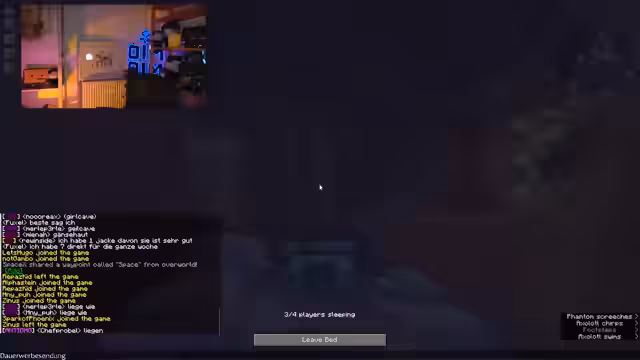 00:38:10Nachdem die Probleme mit den Farmen zunächst im Fokus standen, richtet sich die Aufmerksamkeit nun dem Endertag zu. Merle und eine Gruppe von Streamern, darunter Revi und Fabo, starten einen koordinierten Angriff auf den Enderdrachen. Der Kampf ist chaotisch und von zahlreichen Problemen geprägt: Komplikationen mit der Navigation im End, dem Spawnverhalten des Drachen und der Koordination im Team. Der Streamer verliert dabei Rüstung und ist hochgradig gestresst, doch das gemeins Ziel, den Drachen zu besiegen, treibt die Gruppe an und schafft trotz des Chaos eine Gemeinschaftserfahrung.