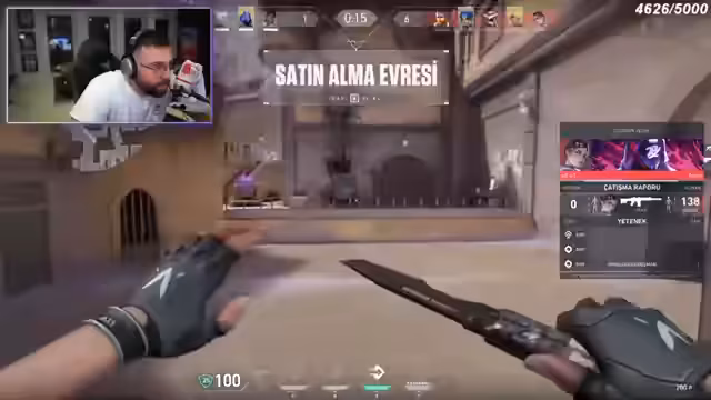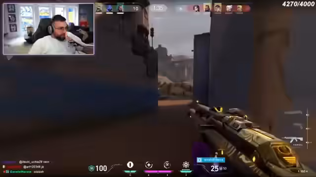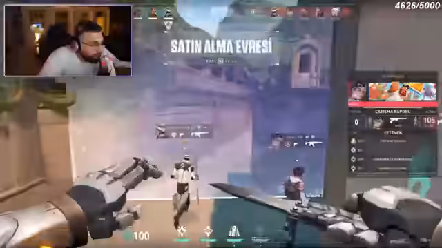 05:38:09Nach den anhaltenden Konflikten wechselt der Streamer das Spiel von 'Among Us' zu 'Valorant'. Das Gameplay ist von extremer Aggression und Dominanz geprägt. Er gibt klare Anweisungen an sein Team, agiert sehr selbstbewusst und feuert mehrfach auf Gegner. Der Ton ist aggressiv und seine Taktik zielt auf eine schnelle und entscheidende Überlegenheit ab.