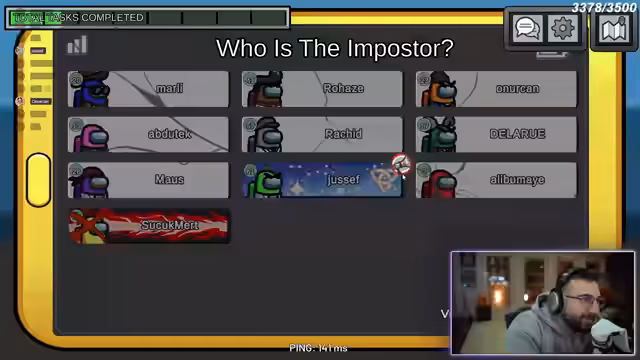 05:42:29Nachdem Yusuf als Impostor identifiziert wird, wird er aus der Runde gewählt. Die Spieler bemerken, dass Yusuf plötzlich aus dem Spiel fliegt, was auf eine schlechte Internetverbindung hindeutet. Dies führt zu Spekulationen über die Auswirkungen auf das Spiel, da ein Impostor weniger die Dynamik verändert. Die Diskussionen drehen sich weiterhin um die Identifizierung der verbleibenden Impostor. Es wird betont, dass Geister keine Aufgaben mehr erledigen sollten, da dies als respektlos empfunden wird. Die Spieler versuchen, ihre Aufgaben schnell zu erledigen, um einen Sieg durch Aufgabenabschluss zu sichern, falls die Impostor nicht rechtzeitig identifiziert werden können. Die Runde ist geprägt von Verwirrung und dem Versuch, die Strategie der Impostor zu durchschauen.