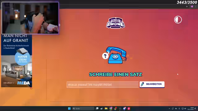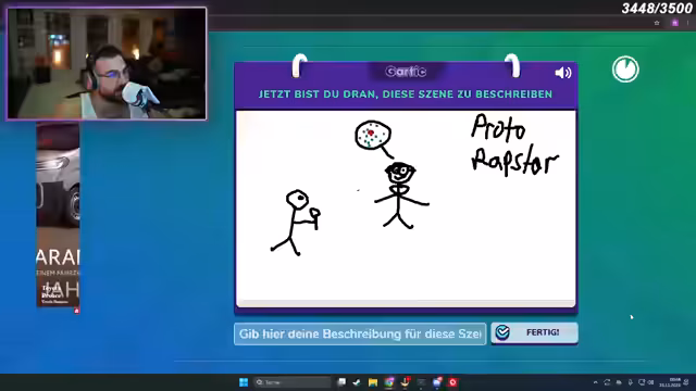 08:17:09Die Spieler entscheiden sich für das Spiel 'Scribble', bei dem ein Spieler etwas malt und die anderen erraten müssen, was es darstellt. Die Regeln werden kurz erklärt: Ein Spieler schreibt einen Satz, den ein anderer malen muss, und dann müssen weitere Spieler das Bild interpretieren und einen neuen Satz dazu schreiben, ähnlich einer stillen Post mit Bildern. Die ersten Runden sind von technischem Chaos und Verwirrung geprägt, da einige Spieler Probleme mit dem Link oder der Vollbildansicht haben. Trotz der anfänglichen Schwierigkeiten und der kurzen Zeitlimits für die Zeichnungen und Beschreibungen versuchen die Spieler, kreativ zu sein und humorvolle Beiträge zu leisten. Die Ergebnisse sind oft unerwartet und führen zu viel Gelächter, da die Interpretationen der Bilder stark voneinander abweichen. Die Spieler genießen die Abwechslung und den neuen Spielmodus, auch wenn die Qualität der Zeichnungen variiert.
