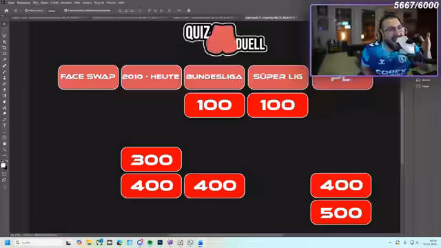 06:06:59Der Stream wechselt von einem allgemeinen Karrieremodus zu spezifischeren Fußball-Quizzes. Es wird der League-Modus vorgestellt, bei dem Fragen zur englischen Premier League und türkischen Süper Lig gestellt werden. Die Nutzer buzzen auf Fragen, die von einfachen 100-Punkte-Fragen bis zu schwierigen 500-Punkte-Fragen reichen. Es kommt zu intensiven Runden, bei denen die Teilnehmer um Punkte kämpfen und sich über deren Fehlentscheidungen ärgern.