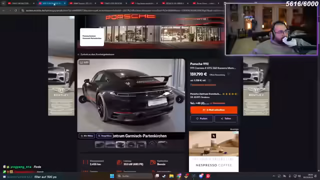00:49:40Nach der intensiven Auseinandersetzung mit den Berliner Themen, wechselt der Streamer das Thema und zeigt sich fasziniert von Dubaier Luxusautos. Er analysiert mehrere in Dubai parkende Porsches, GT3 und andere Sportwagen, die bei Regen stark verschmutzt sind. Er kommentiert Preise und Zustände der Fahrzeuge, wobei er besonders einen GT3 mit 75.000 Euro als attraktiv empfindet, aber auch die hohen Import- und Zollkosten nach Deutschland als Hemmschuh ansieht.