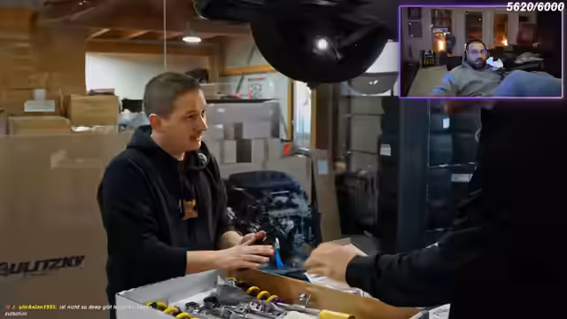 01:16:51Nachdem der Streamer zunächst seine eigenen Fragen und Gedanken zum langstehenden S63 teilt, wendet sich der Fokus plötzlich einem Gewinnspiel zu. Er kontaktiert einen Zuschauer namens Florian (Flo), den Gewinner eines Auto-Tunings, der spontan ins Studio kommt. Der 22-jährige Florian erzählt, wie er sich sein M4 mit Aktienhandel finanzierte, woraufhin der Streamer seinen Respekt ausspricht. Flo beschreibt sein Fahrzeug, seine bisherigen Umbautu wie KW-Federbeine und einen Lippen-Spoiler, und nennt seine Tuning-Wünsche, insbesondere eine lautere Auspuffanlage.