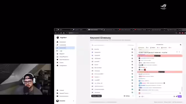 04:09:55Nachdem ein Game verloren geht, in dem der Streamer nach eigener Aussage schlecht spielte, erlaubt er seinen Zuschauern, sich im Chat "Kekweh" oder Fragezeichen zu posten. Er sieht dies als notwendige Unterhaltung, auch bei schlechtem Spiel, und bittet um Verständnis. Gleichzeitig nutzt er die Gelegenheit, erneut alle Follower und Unterstützer namentlich zu erwähnen und zu bedanken, und stellt das noch offene Giveaway, das nach jedem Spiel weiterläuft, wieder in den Fokus seiner Ansprache.