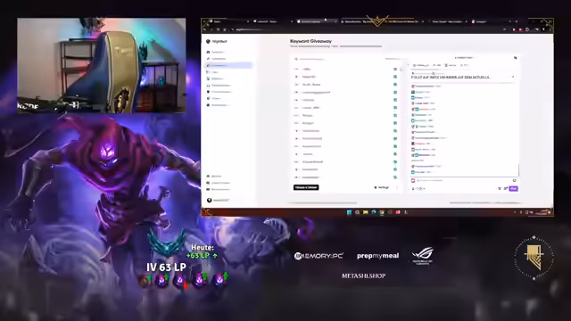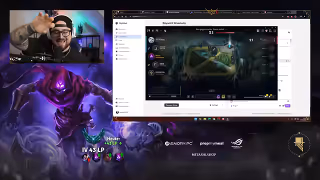 02:57:25Gegen alle Erwartungen und nach anfänglicher Hoffnungslosigkeit gewinnt das Team einen entscheidenden Kampf, was zum Sieg des Spiels und dem Aufstieg zurück in Platin führt. Nach dem Erfolg startet der Streamer ein Giveaway, bei dem er 50 Euro Amazon- oder Spiele-Guthaben unter allen Followern verlosen wird, die ein bestimmtes Keyword in den Chat schreiben. Der Fokus des Giveaways bewusst auf die Followerschaft, ohne Privilegien für Mods oder Subs.