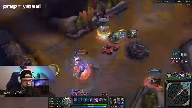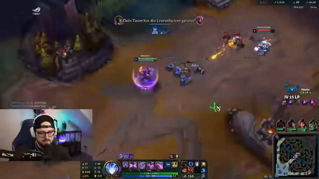 04:53:45Während des Spiels zeigt sich der Streamer zunehmend frustriert über den Gegner Heimerdinger. Er bezeichnet den Champion als 'Hurensohn' und 'Heimi', der das Team 'bumst'. Der Schaden von Heimerdingers automatischen Türmen wird als extrem hinderlich für das Farmen und die Laning-Phase beschrieben. Diese anhaltende Schwierigkeit bei der Bewältigung des gegnerischen Picks erzeugt eine angespannte Stimmung im Verlauf des Spiels.