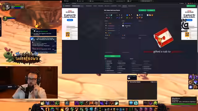 02:46:10Der Streamer unterbricht den Hauptinhalt für eine persönliche, humorvolle Anekdote über eine missglückte Toilettengang-Episode. Kurz darauf erfolgen Viewer-Shoutouts, wobei der Fokus auf dem Zuschauer 'xx-homesxx' liegt. Dieser hat dem Streamer alte World of Warcraft-Bücher gesendet, was den Streamer sichtlich beeindruckt und emotional berührt. Als Zeichen der Wertschätzung schenkt er dem Viewer einen Zapf für drei Monate und bedankt sich herzlich für die 'insane' Freude, die ihm diese Gabe bereitet hat.