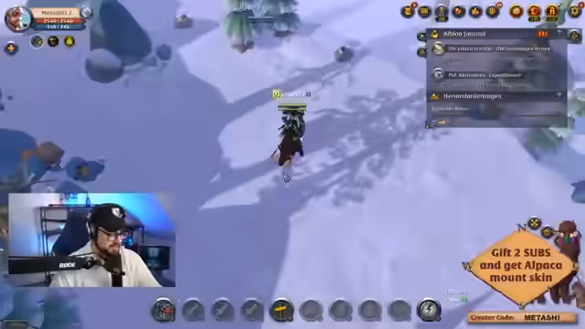 03:30:29Der Streamer konzentriert sich darauf, einen Hirsch-Mount für seinen Charakter zu finden. Er erwähnt, dass er bereits einen Alpaka-Mount von den Subs und einen untoten Hirsch besitzt, aber den lebenden Hirsch sucht. Im Chat gibt es Hinweise, dass man dafür bestimmte Kategorien im Albion-Journal freischalten muss. Der Streamer beschäftigt sich intensiv mit dem Journal-System, das ihm als Wegweiser dient, um Fortschritte im Spiel zu machen und Belohnungen zu erhalten. Er zeigt sich frustriert über die Unübersichtlichkeit des Journals und die notwendigen Schritte.