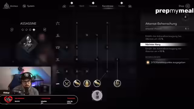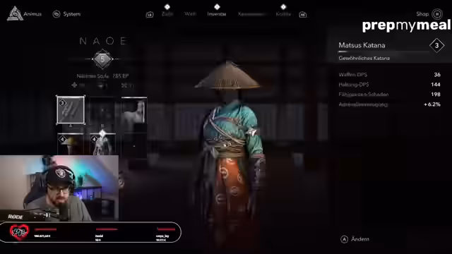 05:40:54Der Streamer kämpft mit einer schwierigen Mission in Assassin's Creed Shadows, bei der sein Charakter geringe Gesundheit und ungeeignete Ausrüstung hat, was die Mission extrem herausfordernd macht. In der Pause dieser Konfrontition wird erneut intensiv für das um 15 Uhr startende Giveaway geworben, um die Zuschauer bei der Stange zu halten und maximale Teilnahme zu sichern.