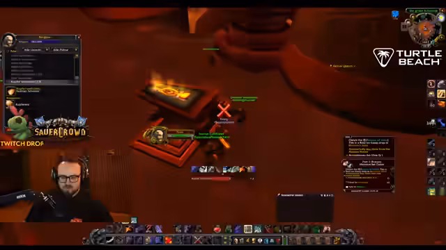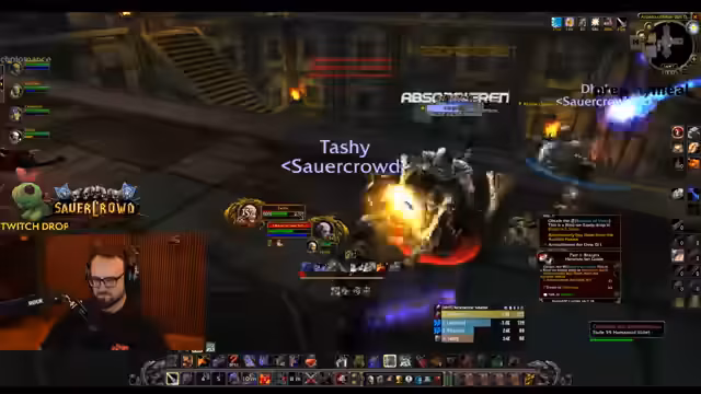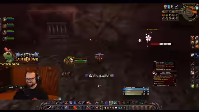 08:47:06Der Streamer koordiniert aktiv die Gruppe für den Raid-Einstieg. Er verteilt Rollen, stellt sicher, dass alle Buffs vorhanden sind, und gibt klare Anweisungen für das Pullen und das Vorgehen gegen die Mobs. Die Kommunikation ist unterbrochen durch Diskussionen über die Gruppenzugehörigkeit von Spielern und technische Schwierigkeiten, was die Herausforderungen der Raid-Organisation zeigt.