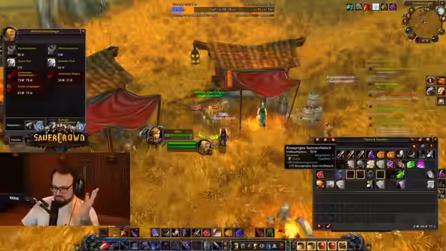 06:49:09Nach SFK ist ein Kopfgeld-Jagd-Team mit Black Rocks, Tarizun und Gatti Zock geplant. Der Streamer gibt strategische Tipps für den Fury-Tank, betont die Wichtigkeit von kritischen Treffern und erwähnt ein Addon, das den Execute-Zugriff visualisiert. Beim Sammeln von Rohmaterialien für die Schmiedekunst wird eine klare Strategie verfolgt: Wollstoff wird zu Bandagen verarbeitet und verkauft, während Spinnensekrete und Leinenstoffe als weniger wichtig eingestuft werden.