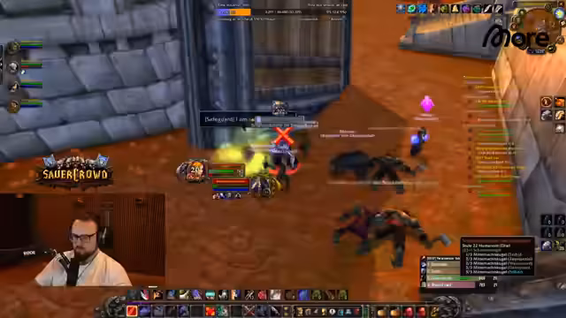 10:41:41Die Gruppe betritt ein neues Gebiet mit gefährlichen Mobs, die besondere Fähigkeiten wie 'Mana-Brand' haben, die den Angriff komplizieren machen. Es wird beschlossen, zuerst die weniger gefährlichen Gegner auszuschalten. Dabei wird die Rolle des Magens besonders hervorgehoben, da dieser durch 'Arcane-Explosionen' mehrere Gegner gleichzeitig kontrollieren kann. Nach der Sicherung des Bereichs wird der Bosskampf vorbereitet. Anschließend wird der Angriff auf den Boss 'Morgan' gestartet, der in mehreren Phasen bekämpft wird.