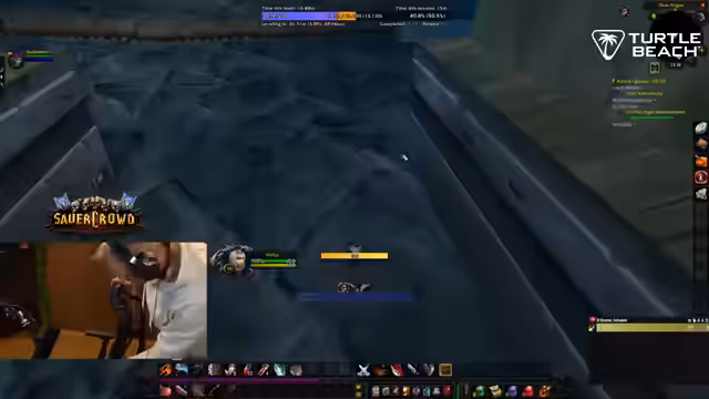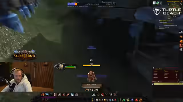 00:04:10Nachdem die technischen Schwierigkeiten zunächst gelöst schienen, wird das Spiel World of Warcraft fortgesetzt. Der Streamer konzentriert sich auf das Questen und Leveln seines Charakters, während er sich über diverse Aspekte des Spiels wie Addons wie Atlasloot und den Weapons Swing Timer unterhält. Ein Disconnect führt währenddessen zu einem unverschuldeten Charaktertod, was zu Diskussionen über die Härte des Hardcore-Modus führt. Die Nachtschicht als Streamer wird als relativ entspannt beschrieben, auch wenn es keine besondere Highlights wie die angekündigten Raves gab.
