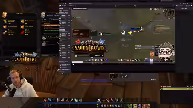 16:09:42Der Streamer diskutiert über sein Game-Play in WoW, insbesondere über die Verwendung von Add-ons und Weak-Auras zur Verbesserung der Spiel performance. Es folgen persönliche Anekdoten über seinen Beruf als Van Carrier-Fahrer in Bremen und den Hafen, sowie gelegentliche humorvolle Verwechslungen und Erwähnungen von Arbeitskollegen im Chat. Die Unterhaltung ist durchsetzt mit spontanen Reaktionen auf das Spielgeschehen, kurzen technischen Verwirrungen und allgemeinen Smalltalk über das Leben und die Arbeit.
