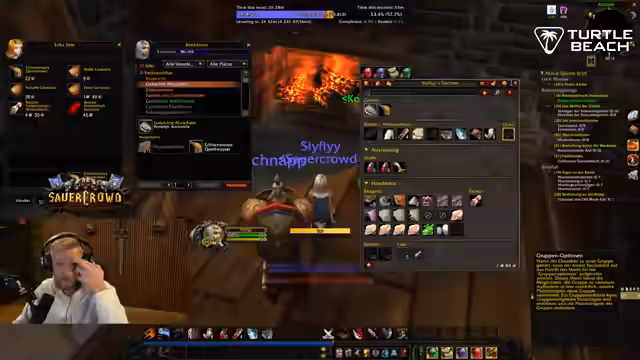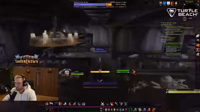 12:34:12Nach einem kritischen Verlust des Mäusekontrollers führt dies zu erheblichen Problemen bei der Steuerung des Charakters und fast zum Game Over. Die Gruppe kämpft ums Überleben, insbesondere gegen einen besonders starken Gegner, genannt Mobgruppe, und muss strategisch vorgehen, um zu überleben. Anschließend konzentriert sich die Gruppe auf die Questlinie mit dem Ziel, einen speziellen Ring zu erhalten. Dabei werden verschiedene Gegnergruppen wie Der seltsame bekämpft und Quests abgegeben, um den Fortschritt zu maximieren.