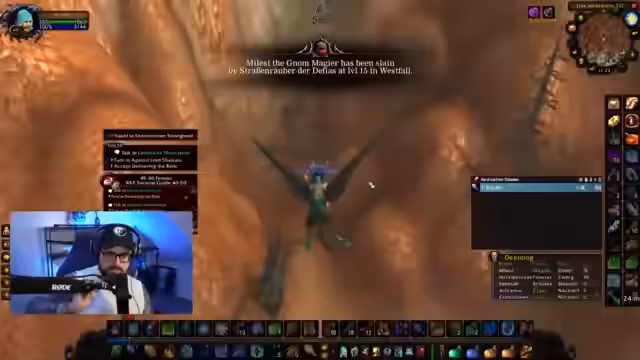 03:48:53Die Gameplay-Session findet in den Hinterlands von WoW statt, wobei der Streamer Wilderkin-Federn sammelt. Er erwähnt die große Anzahl von Entbannungsanträgen und kündigt ein bevorstehendes Giveaway für Follows an. Der Streamer arbeitet sich durch eine gefährliche Quest vor, bei der er vorsichtig Elite-Gegner umgehen muss, und zeigt sich von seinem eigenen Geschick beeindruckt.