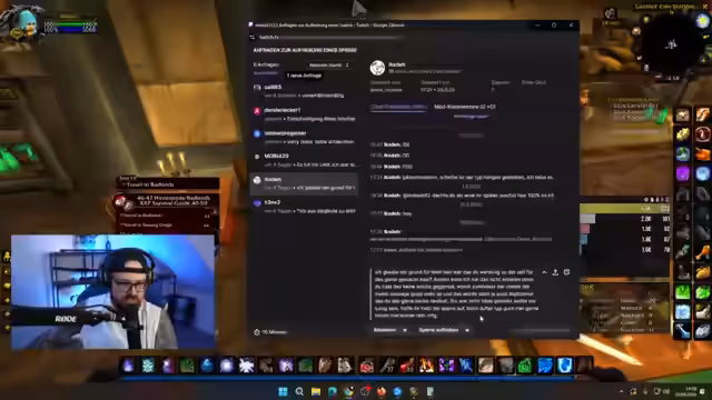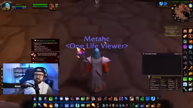 02:28:36Der Streamer konzentriert sich auf das Gameplay in World of Warcraft (WoW) Hardcore. Es kommt zu dramatischen Situationen, in denen der Streamer und seine Gruppe durch Lag (Latenz) gefährdet sind und bei Todesfällen sogar den gesamten WoW-Charakter aufgeben könnten. Im Fokus steht das Leveln und das Farmen von Erfahrungspunkten (XP) sowie das Finden und Besiegen von speziellen Mobs. Dabei werden taktische Entscheidungen getroffen, wie das Nutzen von Freeze-Zaubern, um die Lage zu kontrollieren und Mana zu sparen.