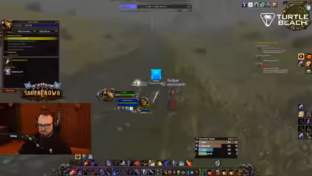 07:09:37Eine Atempause für die aktuelle Game-Session wird genutzt, um von einer legendären Zeit in der deutschen WoW-Community zu erzählen: der WotLK-Ära. Damals schlossen sich verschiedene Streamer zu einer überfüllten Gilde zusammen, was zu chaotischen und unterhaltsamen Raids führte. Besonders die Konflikte zwischen Streamern wie Kimu und Hahn, die ihre Streitigkeiten öffentlich ausfochten, sorgten für reichlich Drama und Clips. Diese Zeit wird als die 'schönste' und 'cringeste' Zeit auf Twitch beschrieben, die das Event heute prägt.