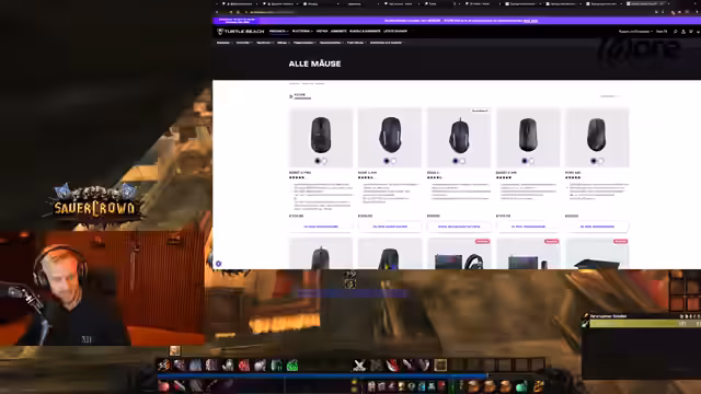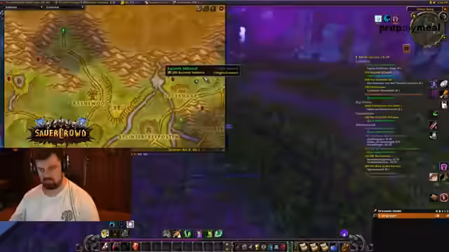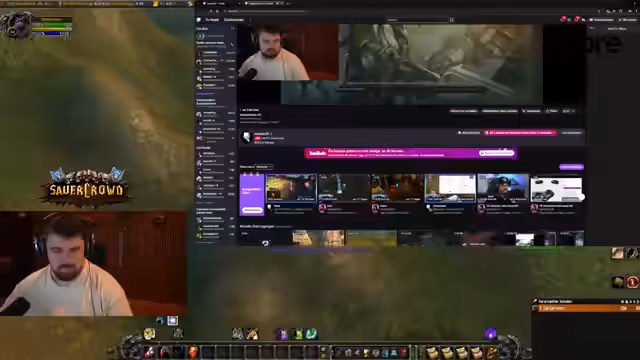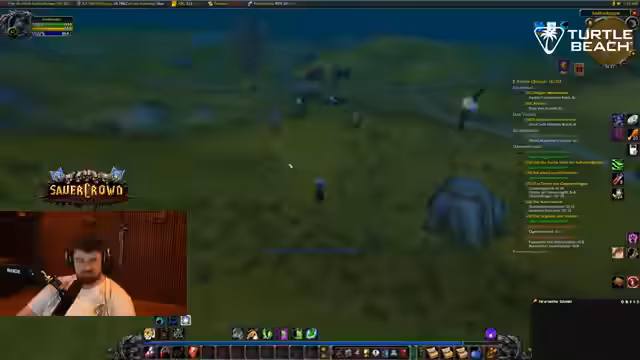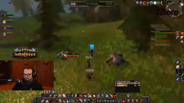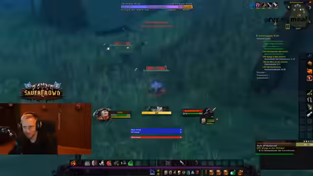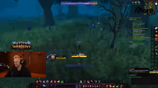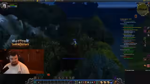 00:19:44Der Streamer spielt World of Warcraft (TBC) und befindet sich mit seinem Charakter bei der Quest für Wassergestalt im Dunkelhain. Er ist Level 19 und sucht aktiv nach den benötigten Erdwurzeln. Während des Grinds wird er vom Chat auf den Tod eines Mitspielers, AKX, aufmerksam gemacht und beschreibt die Umstände des Game-Over-Ereignisses im Detail.