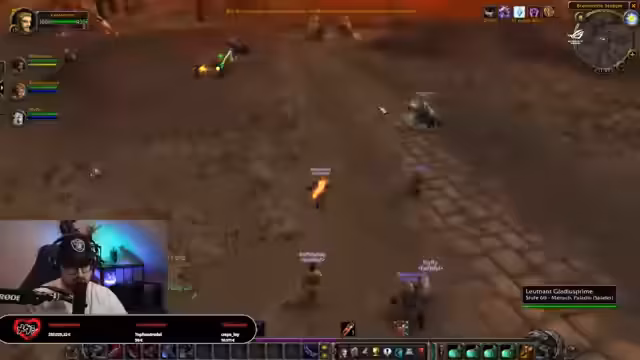 05:20:59Der Stream kehrt zum Gameplay von World of Warcraft Season of Discovery zurück. Die Gilde wird aktiv beworben, mit neuen Mitgliedern eingeladen und organisiert ein Portal zu Deadwind Pass für gemeinsame Aktionen. Es kommt zu Kämpfen, bei denen der Charakter Hildehorst gefährdet ist, und die Jagd nach XP steht im Vordergrund, während parallel die Doku weitergesehen wird.