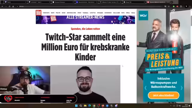 00:43:46Nach den Followern-Grüßen berichtet der Streamer von einer persönlichen Krise: Seine beiden Katzen, Pablo und Coco, hatten hohes Fieber und mussten notfallmäßig in eine Tierklinik. Dies führte zu abgesagten Streams und emotionaler Belastung. Trotzdem zeigt er sich optimistisch für die Genesung der Tiere. Anschließend präsentiert er positive Nachrichten zu 'März mit Herz', darunter einen Bericht in der Bild-Zeitung und eine große Spende von über 10.000 Euro. Er betont, dass jede Spende hilft und die Community den Erfolg des Projekts ausmacht.