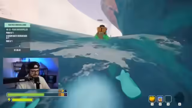 02:30:04Nach einer kurzen Unterhaltung über den Sushikonsum beschließt das Team, das Spiel 'Peak' zu spielen. Die Vorbereitungen werden jedoch durch technische Schwierigkeiten behindert, da das Spiel heruntergeladen werden muss und die Internetverbindung der Streamer nicht ausreicht, um zeitgleich mehrere Spiele zu betreiben. Es kommt zu Diskussionen über den Internetanbieter und Downloadzeiten. Nachdem die technische Seite geklärt ist, geht es darum, sich mit den Spielmechaniken von 'Peak' vertraut zu machen, insbesondere dem Klettern und der Ausdauer.