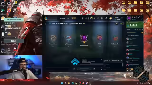 06:09:00Die Vorbereitungen für das League-of-Legends-Spiel werden von technischen Problemen und organisatorischem Chaos begleitet. Einer der Streamer, Freddy, muss kurzzeitig offline gehen. Gleichzeitig werden Spiel- und Lobby-Einstellungen gecheckt, während sich die Teilnehmer über ihre eigenen Fähigkeiten und die des gegnerischen Teams lustig machen und sich gegenseitig provozieren, um in die richtige Spiellausschauung zu kommen.