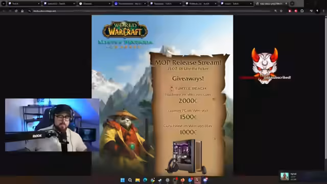 01:00:33Der Streamer widmet sich seinen Followern und Unterstützern, liest zahlreiche Namen vor und betont seine tiefe Verbundenheit mit seiner Community. Es wird auf anstehende Verlosungen im Rahmen des kommenden MOP-Release-Streams hingewiesen, bei denen Hardware im Wert von über 2.000 Euro vergeben wird. Zudem gibt es eine Ankündigung für einen Auftritt auf der Gamescom, bei dem der Streamer für Blizzard als Host tätig sein wird, was er als eine große Ehre bezeichnet.