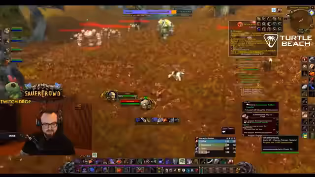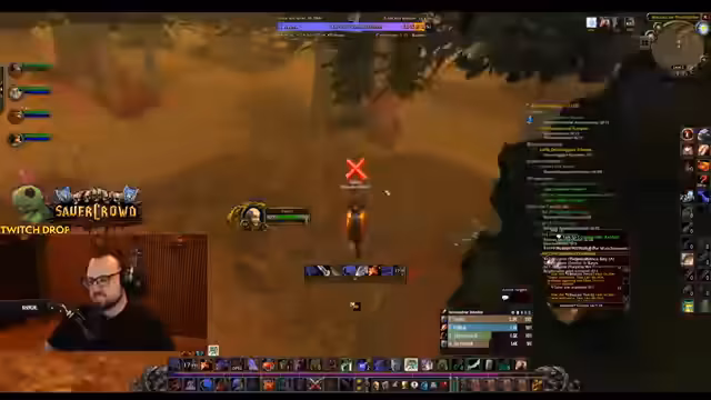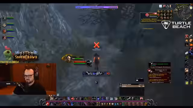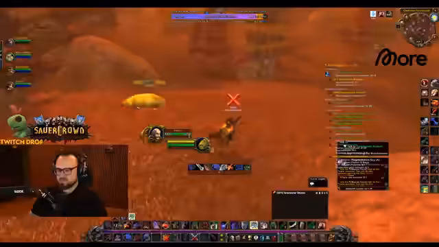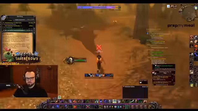02:48:41Die Gruppe fliegt nach Silithus, um die 'Essenz der Erde' zu farmen. Der Streamer markiert Elite-Mobs und koordiniert das Pullen von Gegnern wie 'Lavinius'. Dabei kommt es zu technischen Schwierigkeiten mit Layer-Wechseln und zur Entdeckung eines speziellen Rings, der einen Drop von 'Elementar-Invasionen' besitzt. Das Ziel ist, seltene Gegenstände für die Gruppenmitglieder zu farmen und die Quests rechtzeitig abzuschließen.