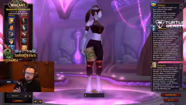 07:27:53Der Streamer berichtet von seinen Erfolgen bei Giveaways in der WoW-Section, bei denen er zweimal gewonnen hat, einmal Game Time und einmal Gettelnet Guthaben. Er betont, dass dies im Spirit des Spiels sei. Anschließend geht er auf seine Vorbereitungen für einen Hardcore-Charakter ein. Er erzählt, wie er kurz den Alt+F4-Tastenkombination verwendet, um den Prozess des Charakter-Boostings zu umgehen und stellt seinen vorbereiteten Draenei Charakter vor, den er auf dem Server GBC spielen wird. Die Priorität liegt auf dem Jubiläum von Burning Crusade.