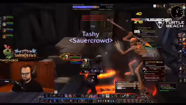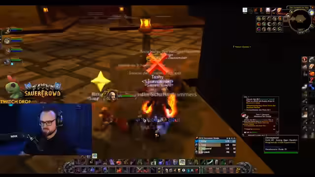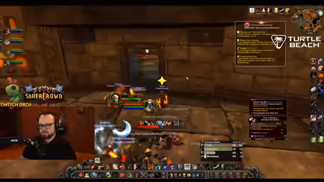 08:51:08Nach einer Pause zum Entzauben von Gegenständen geht es weiter mit der Vorbereitung auf die nächsten Herausforderungen. Der Streamer überlegt, ob der World Buff eher für den Endboss oder für den bevorstehenden Kampf genutzt werden sollte. Man entscheidet sich, den Buff kurz vor den Brandwachen zu ziehen, um das Momentum zu nutzen. Gleichzeitig werden die Pet-Anfragen und die Buff-Koordination innerhalb des Teams besprochen, um eine nahtlose Fortsetzung des Dungeons sicherzustellen.