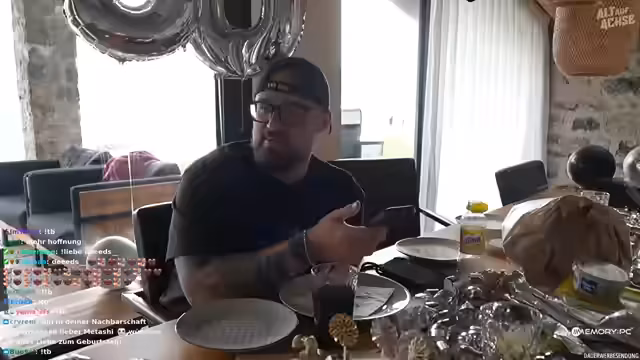 00:15:45Der Stream startet mit dem offiziellen Geburtstag des Streamers. Er ist sichtlich aufgeregt, da er seinen Geburtstag zum ersten Mal on-stream feiert. Seine Freundin hat überraschenderweise eine große Geburtstagsfeier mit selbstgeballonen, einer speziell aus Italien importierten Torte und vielen Geschenken vorbereitet, die er erst im Stream sieht. Die Stimmung ist von anfänglicher Überraschung und Freude geprägt, als die erste Torte mit der Aufschrift '30' und eine zweite, kleinere Torte enthüllt werden.
