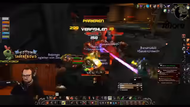02:55:39Der Streamer gerät während des Kampfes gegen eine große Spinne unter starken Druck, da er gestunt wird und sein Tanken erschwert wird. Er fordert das Team auf, die kleineren Gegner zu eliminieren, während er versucht, die große Spinne in Schach zu halten. Gleichzeitig gibt es technische Probleme im Spiel, ein Spieler scheint disconnectet zu sein. Der Streamer beschreibt den chaotischen Verlauf des Kampfes, bei dem es zu mehreren Todesfällen kommt. Trotzdem gelingt es dem Team letztendlich, den Gegner zu besiegen, auch wenn der Verlust von 'Mauki' eine Niederlage bedeutet.