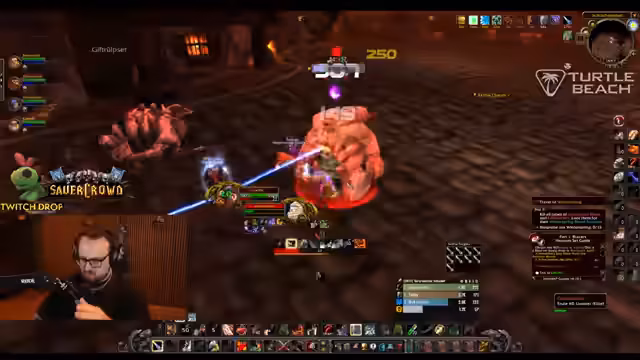 06:33:17Der Streamer und seine Gruppe erleben Frustration, da ein benötigter Gegner namens Steinbuckel nicht auftaucht und die Questziel-ID zu verlieren droht. Nach mehreren vergeblichen Versuchen und Diskussionen über fehlende Respawn-Mechaniken wird beschlossen, den Dungeon ohne dieses Ziel fortzusetzen und nur den ersten Boss zu machen, um die Zeit zu nutzen. Der Fokus verlagert sich auf die Fortsetzung des laufenden Rades, da die Verhandlung über die Anzahl der Läufe bereits feststeht.