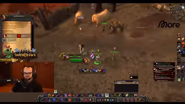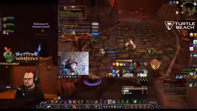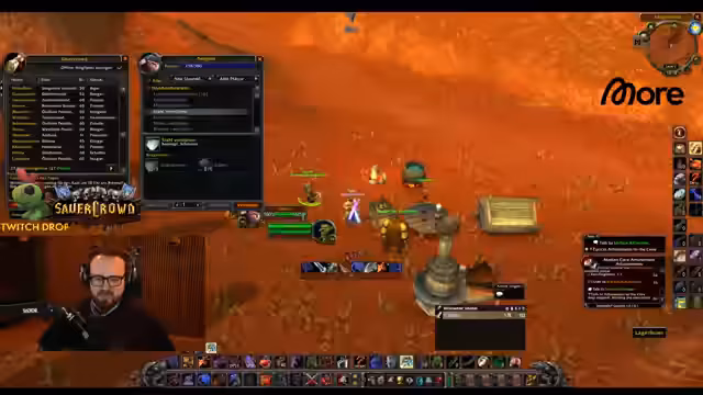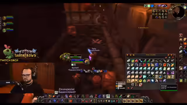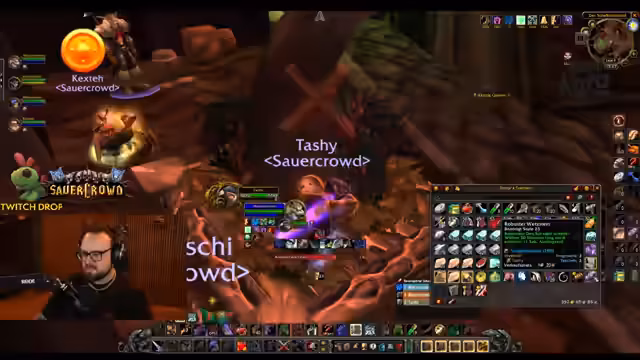 01:52:49Der Streamer konfrontiert technische Schwierigkeiten, insbesondere bei der Verwendung des Add-ons Grid, und beschreibt dessen Interface als kompliziert und unästhetisch. Gleichzeitig bereitet sich die Gruppe auf einen Raid vor, in dem Items wie eine Armbrust und ein Umang benötigt werden. Es wird über die Verteilung von Loot diskutiert und es kommt zu kleineren Spannungen, als ein Spieler als "gierig" beschuldigt wird, Items zu looten, die er angeblich nicht benötigt.