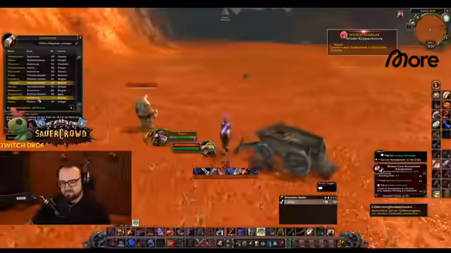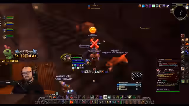 06:58:31Die Suche nach dem fehlenden Steinbuckel-Mob geht weiter, und der Streamer zeigt sich zunehmend verzweifelt über dessen ständiges Fehlen. Er überträgt vorübergehend die Führung des Raids an "Chef Strubbel", um den Prozess zu beschleunigen, da der Streamer selbst das Gefühl hat, einen "full run" machen zu müssen, auch wenn der wichtige Mob nicht gefunden wird.