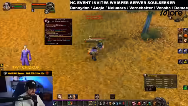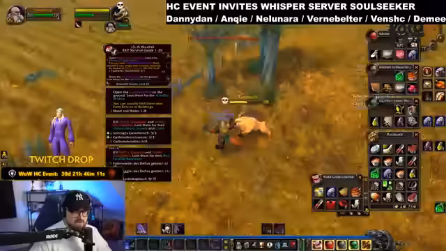01:36:13Der Streamer drückt seine Vorfreude auf sein neues Büro aus, da viele Gegenstände dafür eintreffen und er umfassende Unterstützung erhält. Er kündigt an, dass noch Plätze in der WoW Hardcore-Gilde frei sind und Interessierte ihn für eine Einladung kontaktieren können. Es wird über die Verwaltung der Gilde gesprochen, insbesondere darüber, Spieler, die länger als zwei Tage offline sind, zu entfernen, um Platz für neue Mitglieder zu schaffen. Der Streamer äußert seine Begeisterung über den Beitritt von Kevin zur Gilde und die Entfernung des Onibuffs, was den Start des eigentlichen WoW HC Events markiert. Er betont, dass nun wieder etwa 60 Plätze in der Gilde verfügbar sind und jeder herzlich eingeladen ist. Des Weiteren wird ein Rare Mob namens „Erntevernichter 2000“ in Westfall gesucht, was zu einer kurzen Verwirrung über die richtige Layer-Instanz führt. Ein Spieler schafft es, den 20er Rare Mob alleine zu besiegen, was den Streamer beeindruckt und zu einer Diskussion über die Stärke von Hexenmeistern führt.