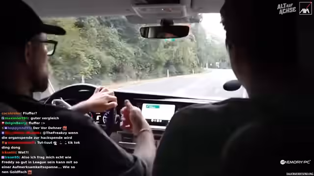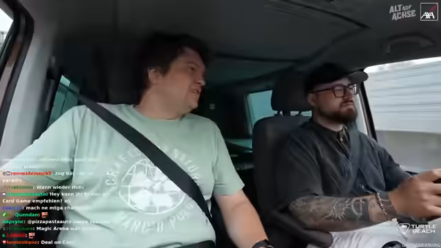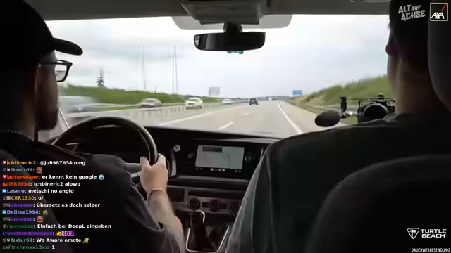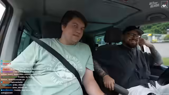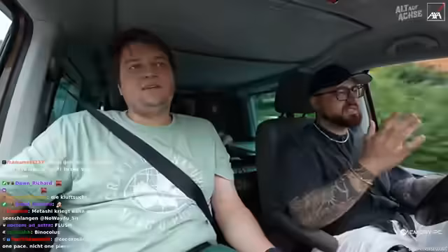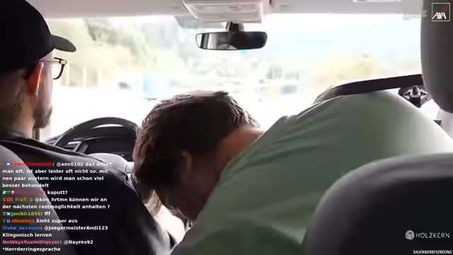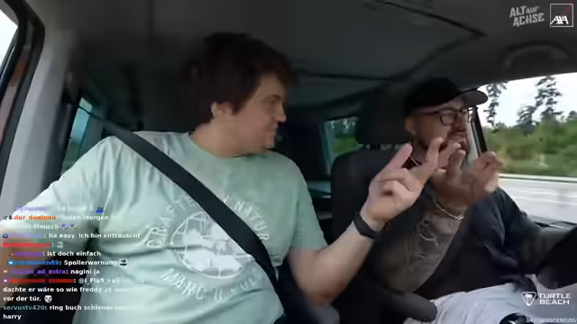 01:33:36Es wird festgestellt, dass die Navigation benötigt wird. Es folgt eine Diskussion über Deutschrap, wobei einer der Streamer zugibt, kein großer Fan zu sein, aber einen Haftbefehl-Song kennt. Anschließend wird über Verkehrssicherheit und die Ablenkung durch den Stream während der Fahrt gesprochen. Es wird eine Anekdote über eine Begegnung mit einer lauten, religiösen Jugendgruppe in einem Parkhaus erzählt, die mit Inbrunst Jesuslieder sang. Die Confidence dieser Gruppe wird hervorgehoben und es wird spekuliert, ob sie betrunken waren. Der Chat wird nach Content-Ideen gefragt, darunter eine Oma-Massage, wobei die Notwendigkeit der Nacktheit betont wird.